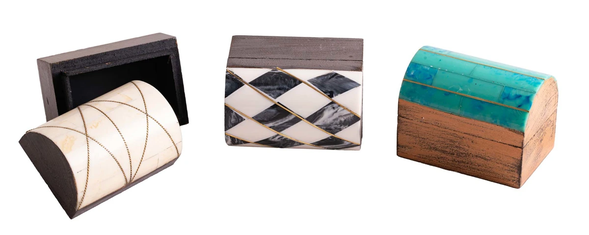 3-er Set Holzdöschen mit Kunstharzdekor