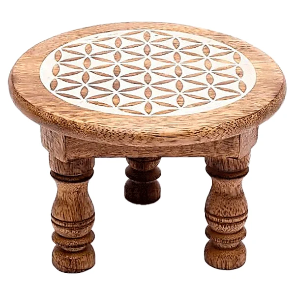 Ein feiner Platz für Ihre Rituale: Dieses kleine Tischchen aus Mangoholz ziert die eingravierte „Blume des Lebens“ – ein Symbol für Harmonie, Energie und kosmische Ordnung. Es ist ideal als Podest für Kristalle, kleine Statuen oder Räucherwerk, als Ablagefläche für Edelsteine oder zur energetischen Ausrichtung Ihrer Rituale. Es eignet sich auch zur Vitalisierung von Wasser und Lebensmitteln. Kompakt, kraftvoll und vielseitig – es ist ein stilles Zentrum für Ihre spirituelle Praxis. Hinweis: Naturprodukt. Farb- und Maserungsabweichungen sind möglich. Nur für die Nutzung im Innenbereich geeignet.