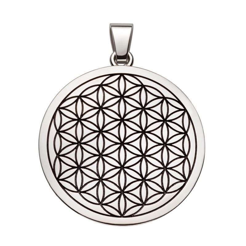 Die neue Variante der Blume des Lebens als Anhänger teilgeschwärzt, leicht gewölbt Ø 27 mm.