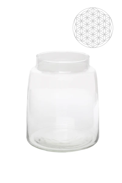 Anzuchtglas mit dem Motiv "Blume des Lebens" im Boden.