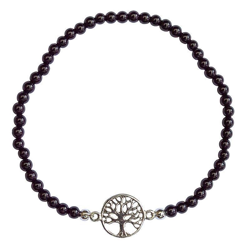 Armband Baum des Lebens 1,2cm Silber 925 mit Onyx Perlen 6cm elastisch
