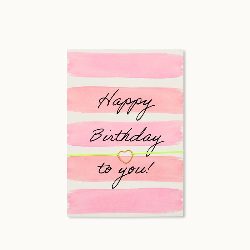 Armband-Karte: Happy Birthday Pink Stripes - by vivi.