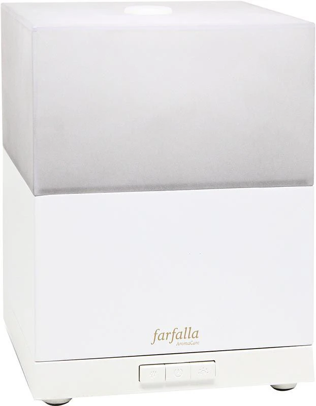 Der Aroma-Vernebler Cube von farfalla verbindet mit einer speziellen Ultraschalltechnologie ätherisches Öl mit Wasser und verteilt das Aroma in der Raumluft. Die Bestandteile der ätherischen Öle können ohne erhitzt zu werden optimal wirken. Die von den Ultraschallwellen hervorgerufenen Ionen reinigen zusätzlich die Luft. Der Aroma-Vernebler ist in Handhabung und Wartung sehr einfach zu bedienen.
