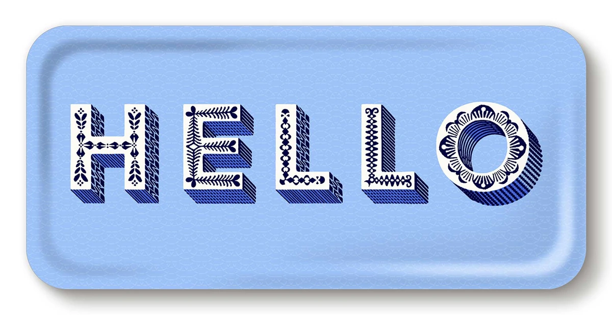 Asta Barrington Hello / blue Tray 32x15 - Jamida of Sweden