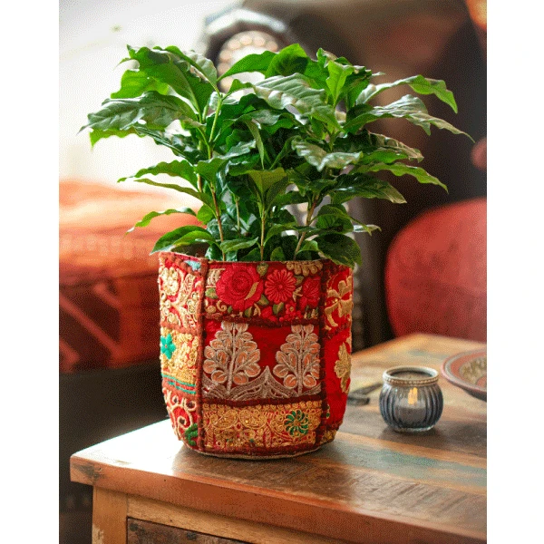Ein nachhaltiges und einzigartiges Schmuckstück: Dieser Aufbewahrungsoder Pflanzentopf wird aus recycelten Sari-Stoffen gefertigt und verleiht jedem Raum einen Hauch von exotischem Flair. Die strahlenden Farben machen jedes Stück zu einem Unikat. Das Innenfutter aus robustem Jute sorgt für Stabilität und Funktionalität – ideal für Pflanzen oder die stilvolle Aufbewahrung von kleinen Gegenständen.