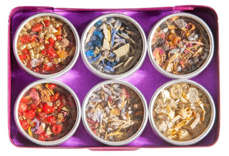 Inhalt: Verschiedene Sorten Olibanum, Benzoe, Myrrhe, Sandelholz, Lavendelblüten