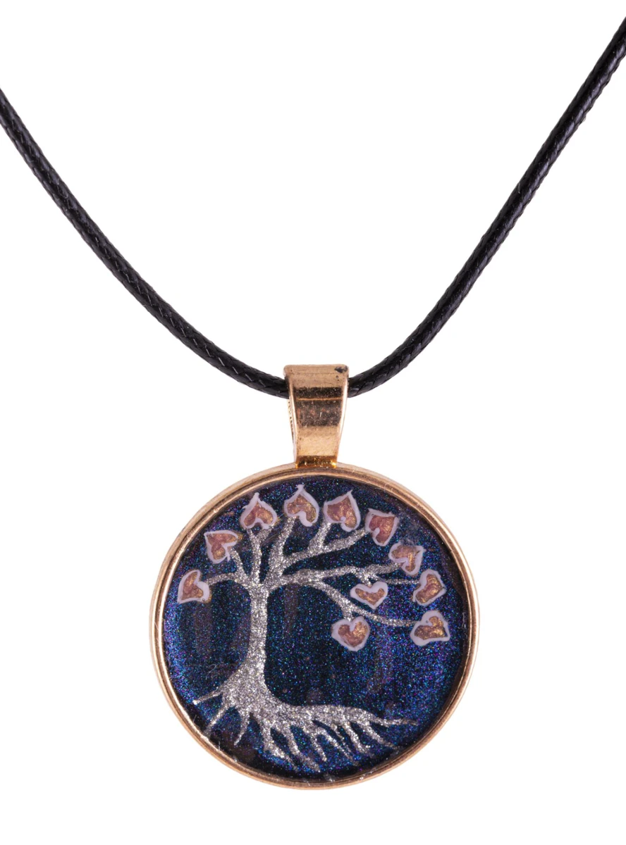 Baum des Lebens, handgemalt - Anhänger mit gewachster Baumwollkette