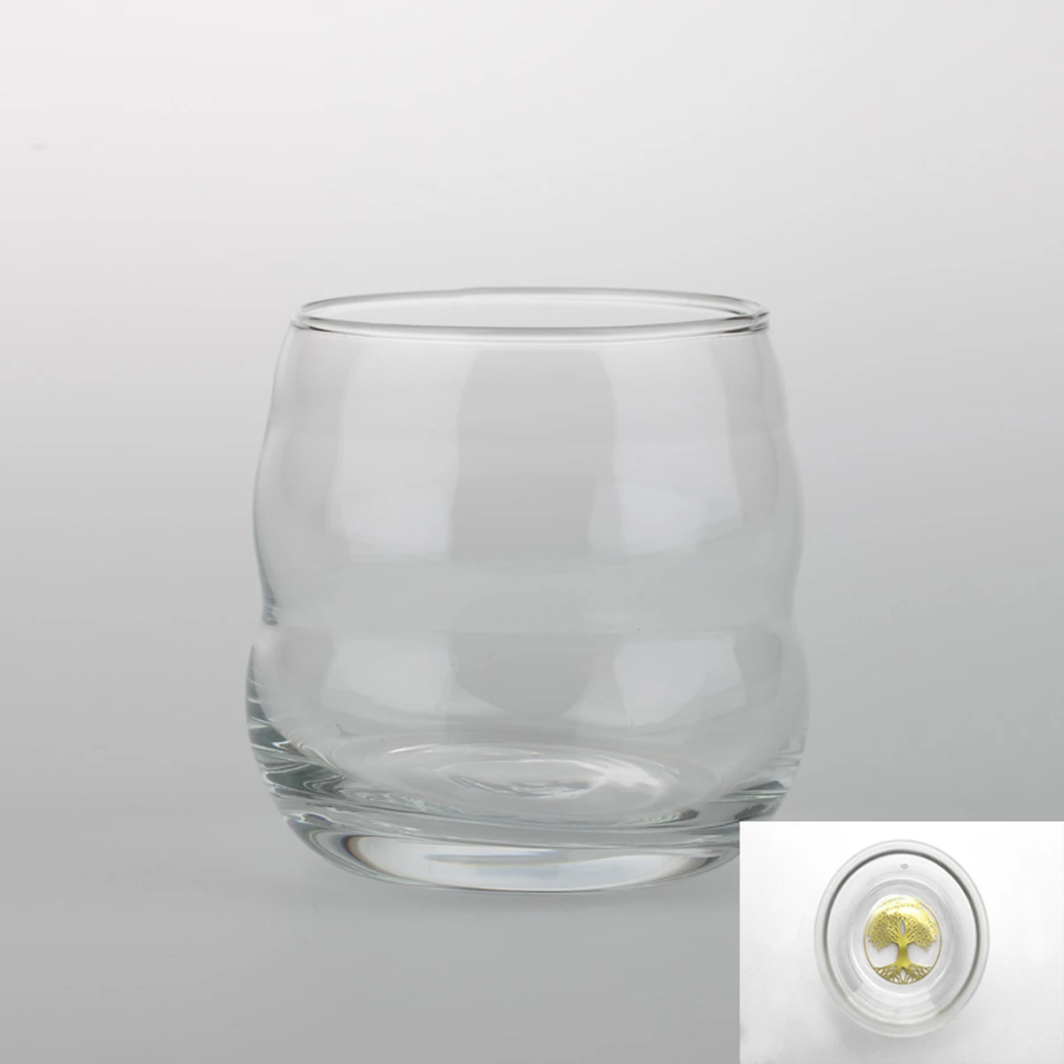 Material: bleifreies Glas, 23.8 Karat Gold Lebensbaum im Glasboden eingebrannt.