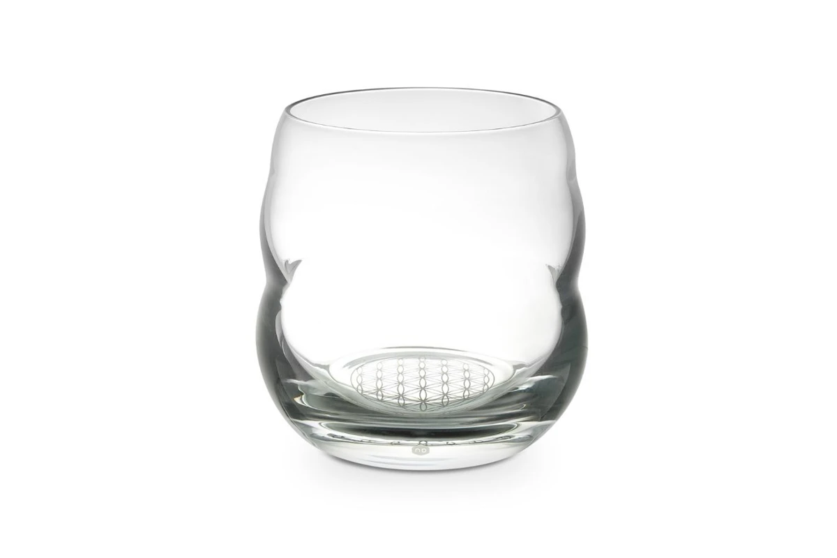 Das Glas Mythos Platin hat das Motiv Blume des Lebens in Platin.