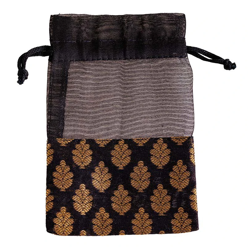 Edles, kleine Organzasäckchen mit Schwarz-Gold Bordüren.