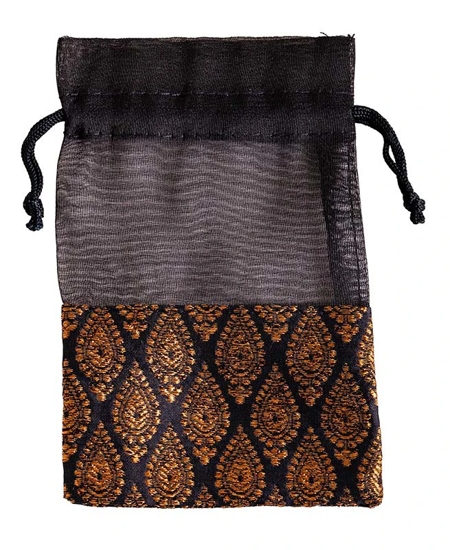 Edles, kleine Organzasäckchen mit Schwarz-Gold Bordüren.