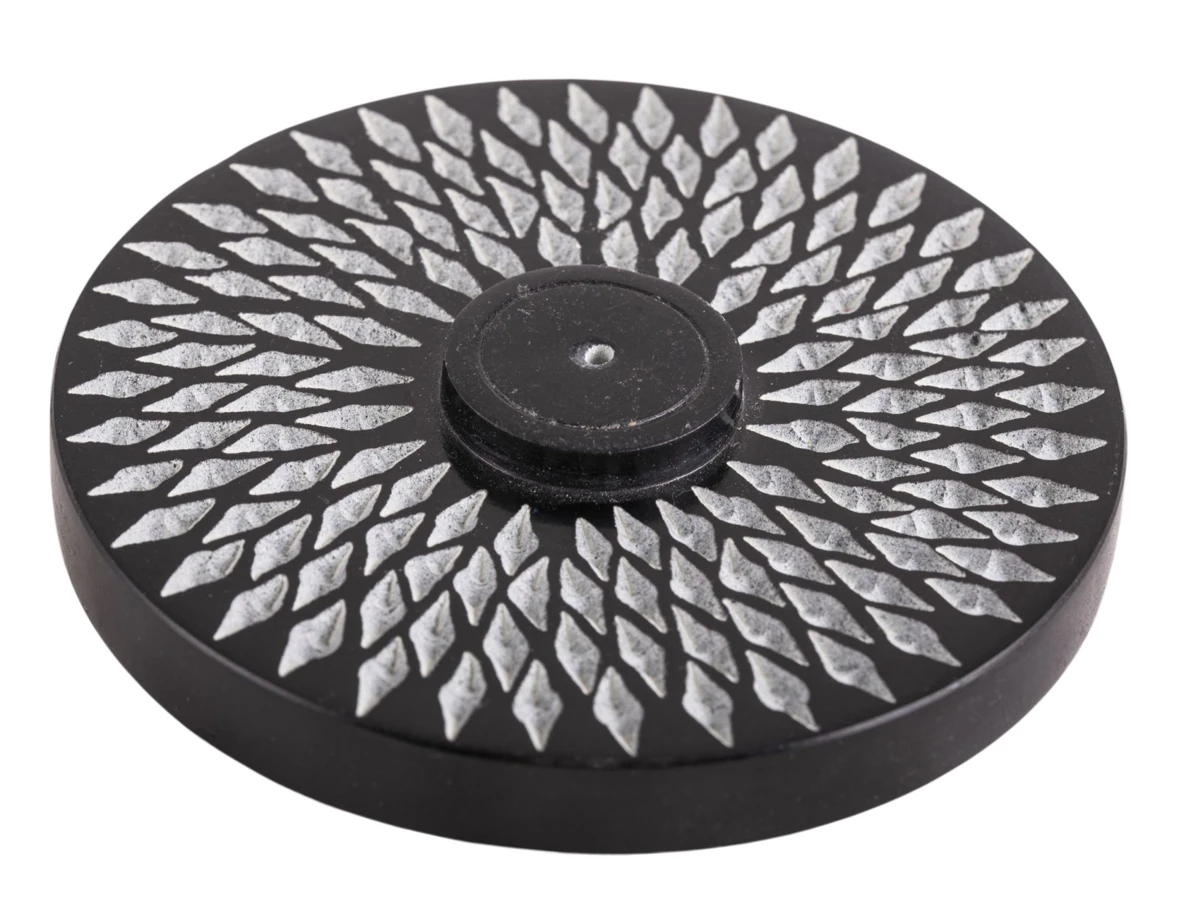 Handgravierter, runder Specksteinhalter für Räucherstäbchen oder Räucherkegel.
