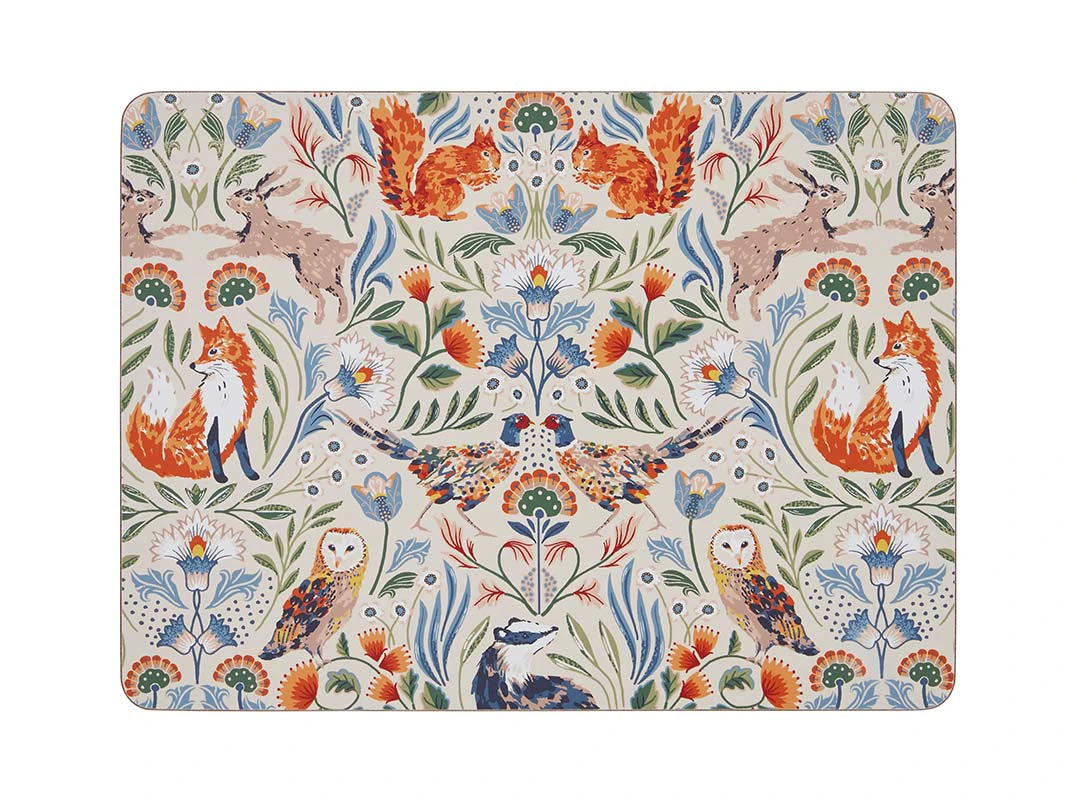 This beautiful Placemat is inspired by an atmospheric fantasy woodland scene, depicted in the traditional Arts & Crafts style. Lovingly hand painted using mixed media to create a whimsical, moody feel in an earthy colour palette that can transition easily from Autumn to Winter.