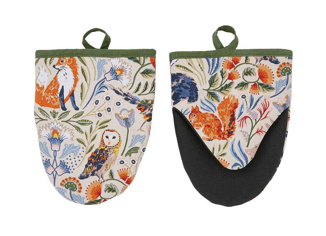 These beautiful Microwave Mitts are inspired by an atmospheric fantasy woodland scene, depicted in the traditional Arts & Crafts style. Lovingly hand painted using mixed media to create a whimsical, moody feel in an earthy colour palette that can transition easily from Autumn to Winter.