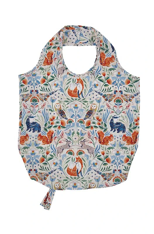 These beautiful Packable bags are inspired by an atmospheric fantasy woodland scene, depicted in the traditional Arts & Crafts style. Lovingly hand painted using mixed media to create a whimsical, moody feel in an earthy colour palette that can transition easily from Autumn to Winter.