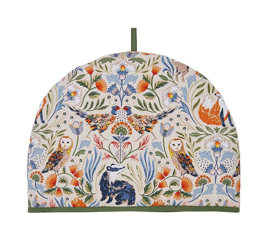 This beautiful Tea Cosy is inspired by an atmospheric fantasy woodland scene, depicted in the traditional Arts & Crafts style. Lovingly hand painted using mixed media to create a whimsical, moody feel in an earthy colour palette that can transition easily from Autumn to Winter.