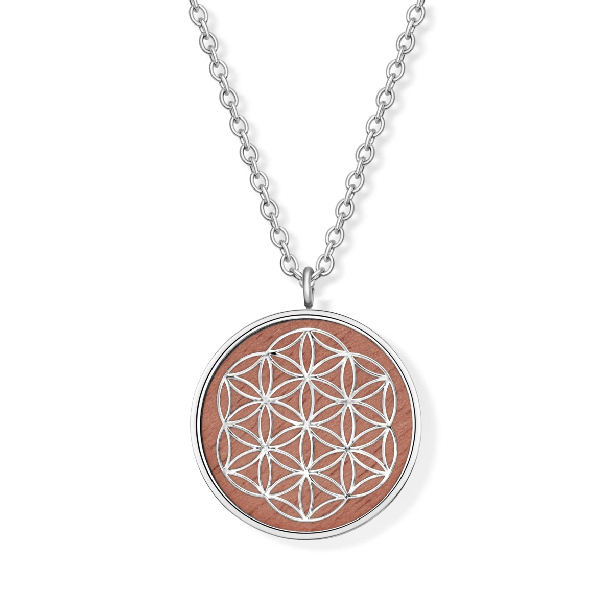 Blume des Lebens auf Walnussholz Anhänger mit Edelstahlkette