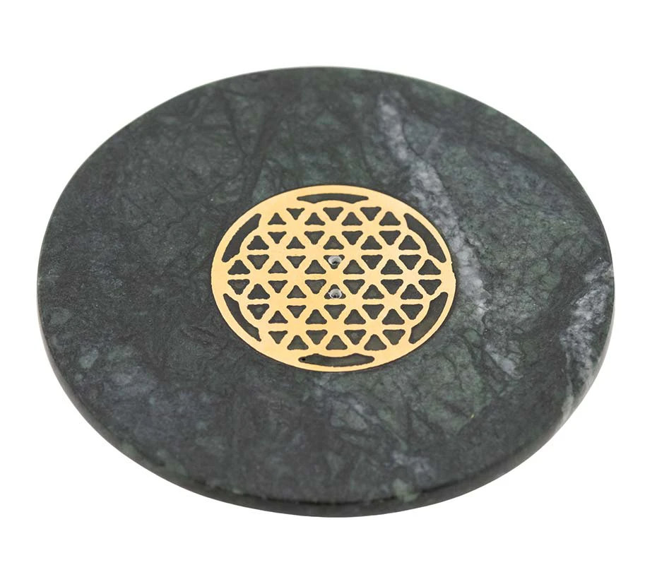 Hochwertiger Ständer aus grünem Marmor mit symbolstarker Messingeinlage. Feine Eleganz aus Marmor. Dieser Stäbchenhalter ist sehr massiv und wirkt doch so zart. Marmor steht für Reinheit und Wandlung zum Guten.