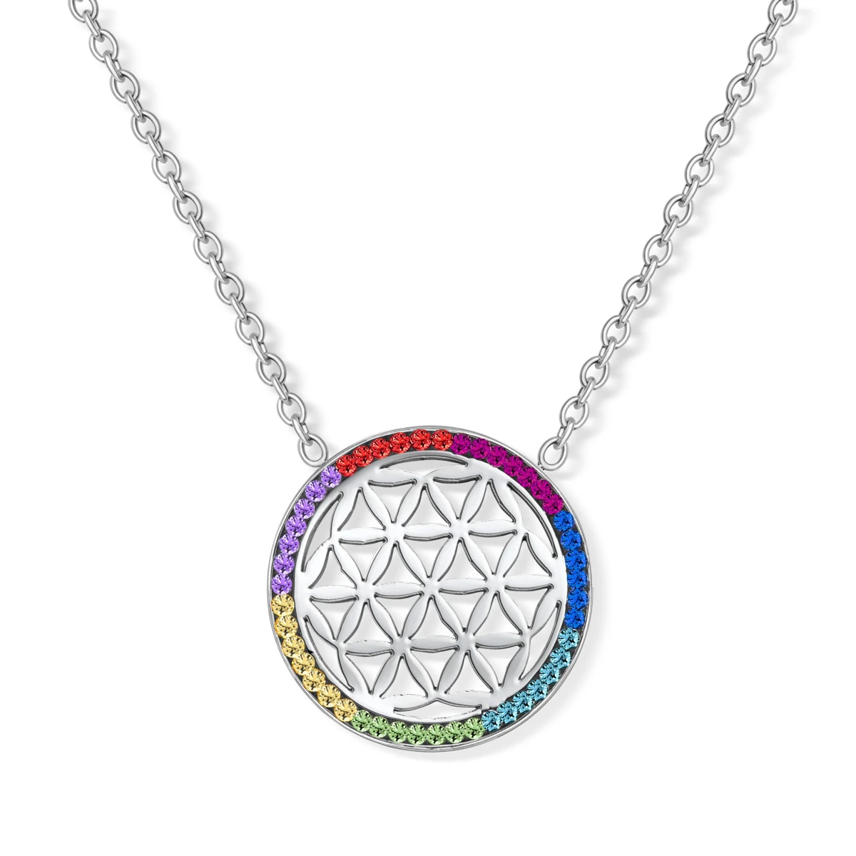 Blume des Lebens im Chakrarad - Anhänger mit Kette