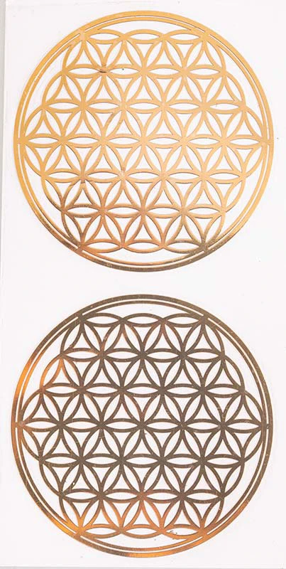 Hochwertige Blume des Lebens Aufkleber aus Metall mit Echtgold vergoldet. Für besonders wertvolle Verzierungen. Es entsteht ein leuchtender 3D Effekt.