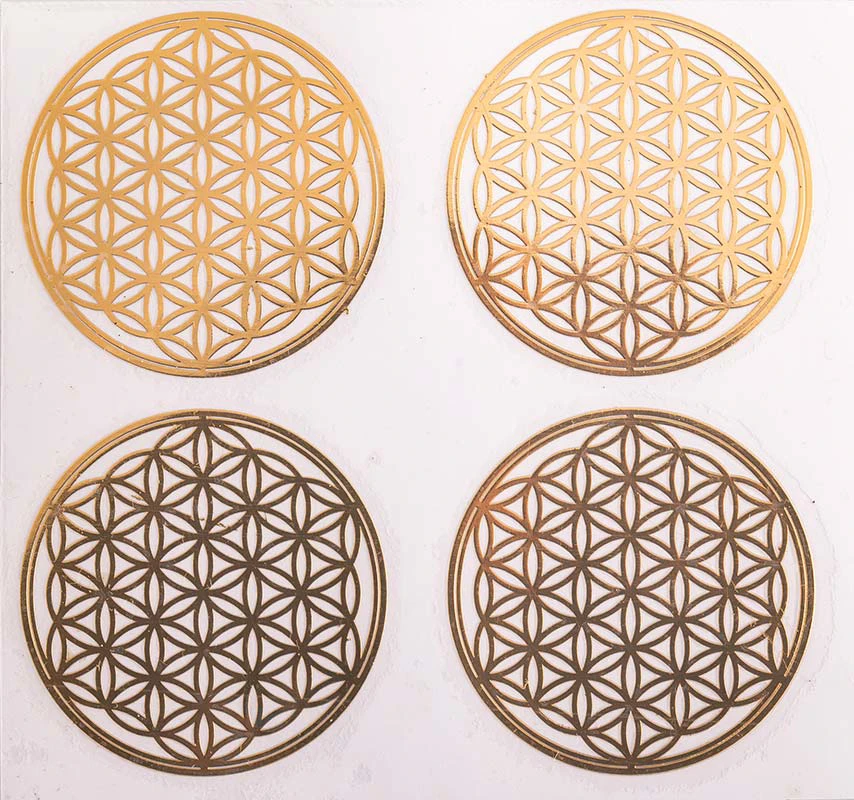 Hochwertige Blume des Lebens Aufkleber aus Metall mit Echtgold vergoldet. Für besonders wertvolle Verzierungen. Es entsteht ein leuchtender 3D Effekt.