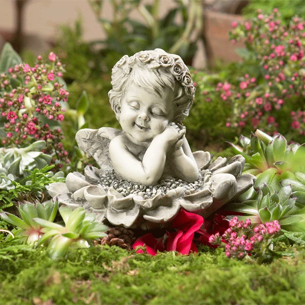 Der Blütenengel Margerite hat an der Unterseite eine Öffnung damit es auf einen Stab gesteckt werden kann. Dekorieren Sie Ihren Garten mit diesem süssen Pflanzenstecker. Der Blütenengel lächelt verträumt und sitzt auf einer Margeritenblüte. einen zufriedenen. Sie finden sicher ein schönes Plätzchen für diesen lieben Engel in Ihrem Garten.