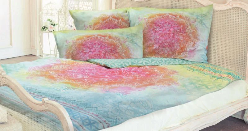 Wundervolle Qualität, beeindruckende, handgemalte Motive und ein faszinierendes Farbenspiel machen die Bio-Baumwoll-Bettwäsche mit mikrofeinem Rosenquarz einzigartig. Das Zusammenspiel aus warmen und kühlen Farbtönen unterstützt, einen ausgeglichenen Schlaf, während die Mandalas mit Fibonacci-Spirale innere Harmonie fördern.