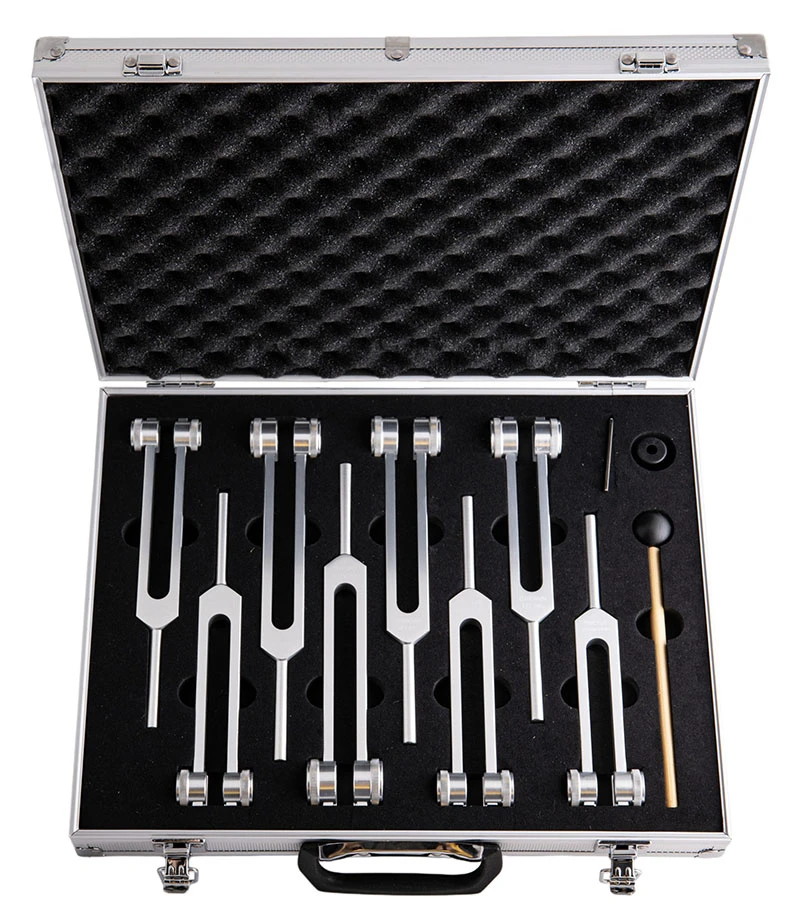 Das Chakra-Stimmgabel-Set besteht aus acht präzise abgestimmten Stimmgabeln, die mit den sieben Hauptchakren des Körpers sowie einem zusätzlichen höheren Herzchakra (Thymuschakra) verbunden sind. Das Set umfasst neben den Stimmgabeln auch einen Stimmgabelständer, einen Klangstab und einen Sechskantschlüssel, und wird in einem praktischen Aluminiumkoffer inklusive Anleitung geliefert.