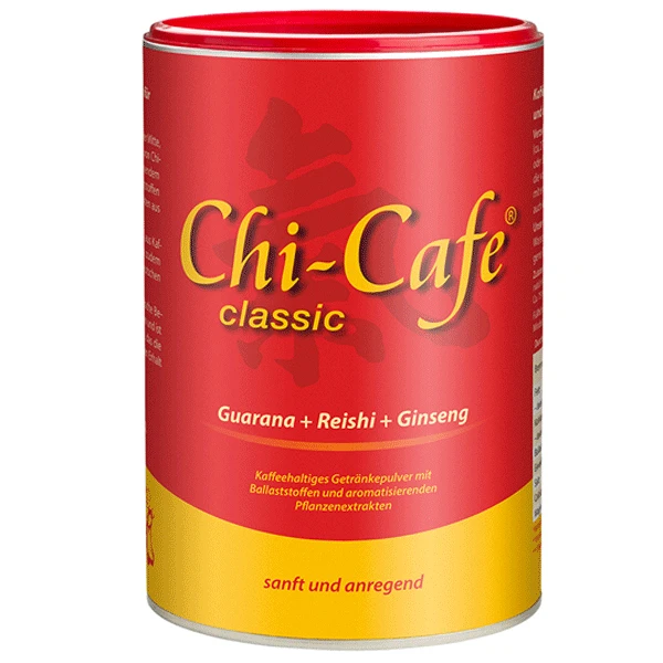 Schonender Arabica-Hochlandkaffee mit einem Hauch Robusta, Guarana, Ginseng und Reishi-Pilz wecken die Lebensenergie (Chi) und beleben Ihren Geist und Ihr Gemüt, ohne Magen und Darm zu belasten. Reishi-Pilz und Ginseng sind reich an besonderen Bitterstoffen mit einem unverwechselbaren Aroma, das perfekt mit Cafe Arabica harmoniert und den vollmundigen Geschmack prägt. Machen Sie mit Chi-Cafe aus einer Ihrer stärksten Gewohnheiten einen Weg der Mitte, wo sich höchster Genuss, Wohlgefühl und Kreativität auf vollkommene Weise treffen. Frei von Gluten, Laktose und Zucker.