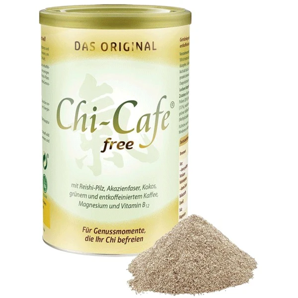 Geniessen Sie den vollen Kaffeegeschmack, ganz ohne Koffein! Chi-Cafe Free kombiniert das Beste aus natürlichem, entkoffeiniertem Kaffee, grüner Kaffee-Extrakt, cremigem Kokosmilch-Pulver und dem wertvollen Reishi-Pilz. Abgerundet mit Magnesium und Vitamin B12 wird dieses Getränk zu einem perfekten Begleiter für Ihre Auszeiten.
