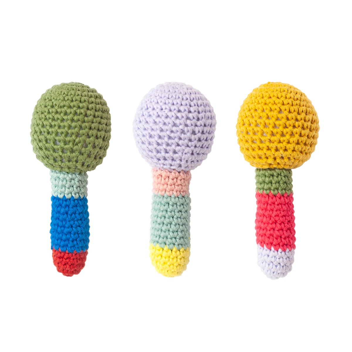 A cheerful gift for a new born: our colourblock crochet rattle. Fits perfectly in tiny baby hands. It is extra small and handmade and comes with a cute little giftbag.