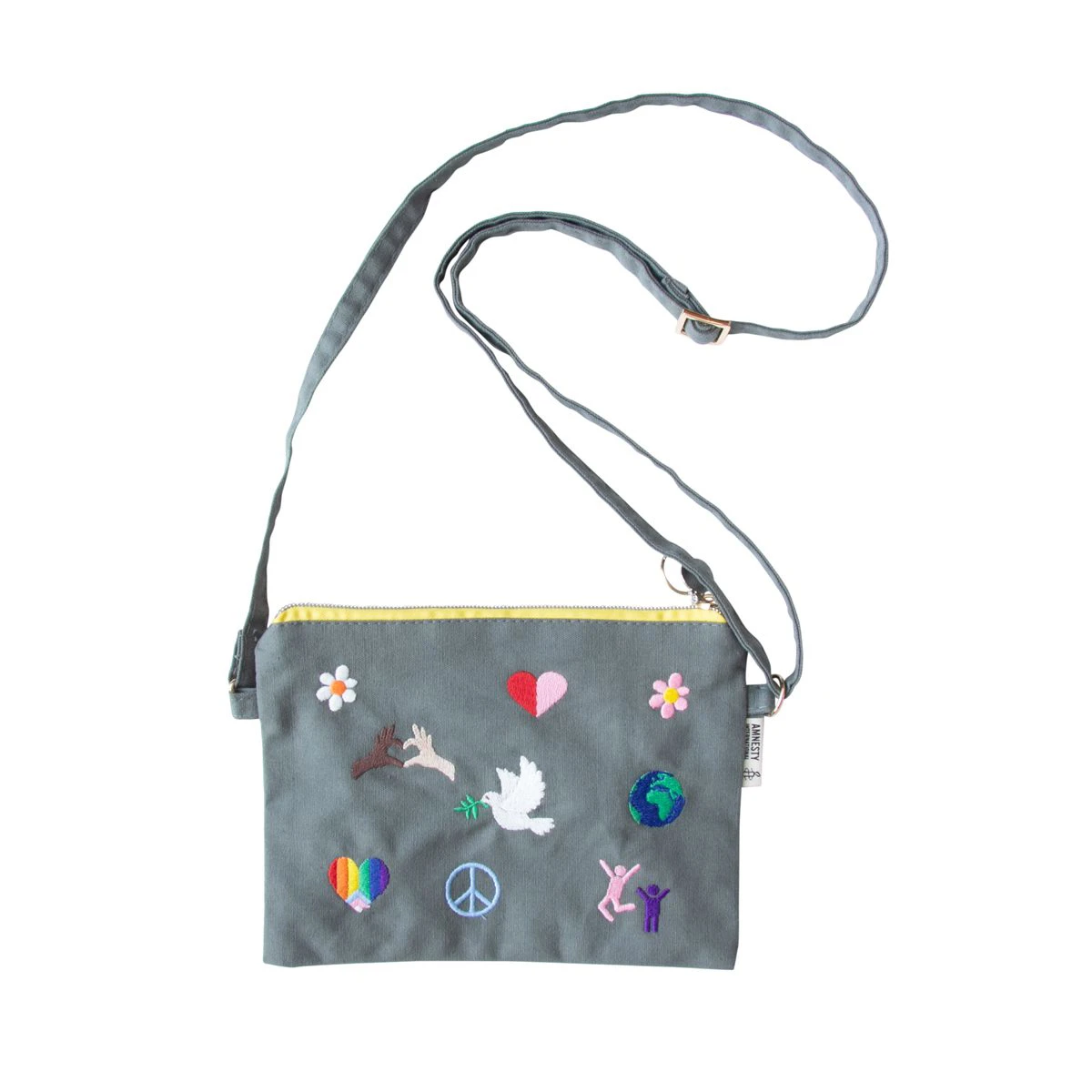 Material: Bag: Out- and inside: Canvas (cotton), Embroidery: Polyester Charm: Zinc Alloy. Nickel free.