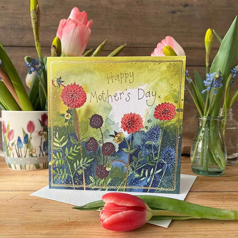 DAHLIA & SEA HOLLY MOTHERS DAY CARD