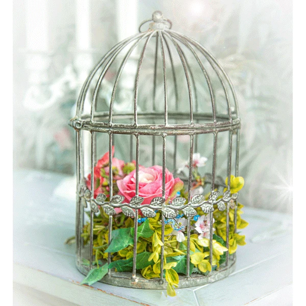 Dieser filigrane Vogelkäfig aus Eisen ist weit mehr als nur ein Blickfang – er lädt dazu ein, kreativ zu werden. Das obere Drittel lässt sich aufklappen, sodass Sie den Käfig ganz nach Ihrem Geschmack mit Blumen, Lichtern, kleinen Schätzen oder saisonaler Deko gestalten können. Ob im Wohnzimmer, auf dem Balkon oder als zentrales Element einer festlichen Tischdekoration – dieser Käfig verleiht jedem Raum eine verspielte, nostalgische Note und lässt sich immer wieder neu inszenieren.