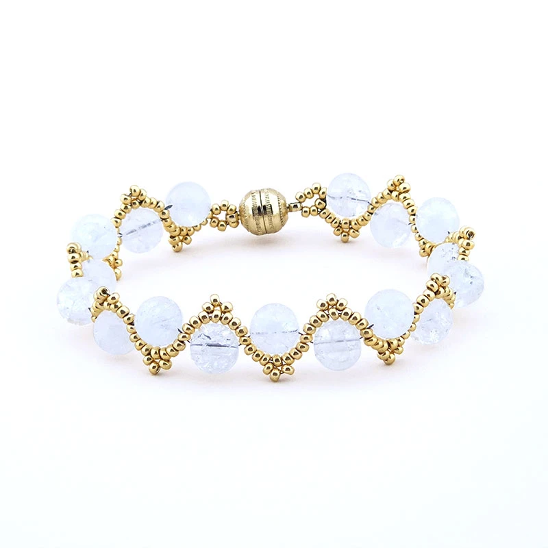 Die feinen, goldenen Miyuki Rocailles Perlen verleihen dem Armband eine besondere modische Ausstrahlung und unterstreichen die Eleganz dieses Schmuckstücks.