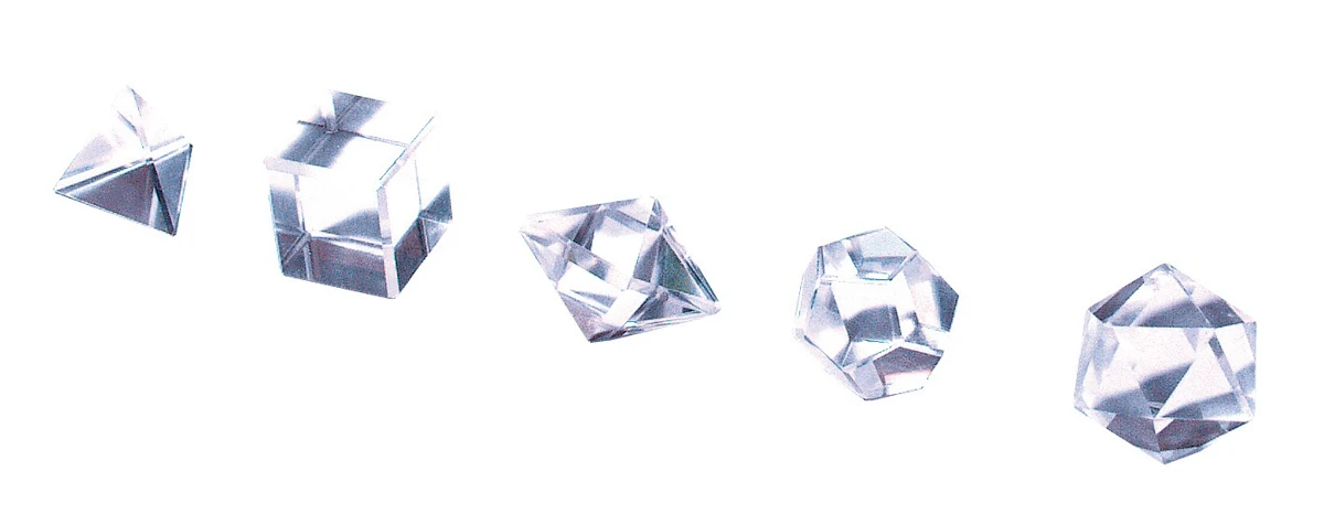 Aus der Kollektion Pendel aus Edelsteinen von Saraswati-Design. Erleben Sie die faszinierende Vereinigung von Ästhetik und Geometrie mit unserem 5er Set platonischer Körper aus strahlendem Bergkristall. Jeder Körper – Tetraeder, Hexaeder, Oktaeder, Dodekaeder und Ikosaeder – wurde kunstvoll aus diesem klaren Edelstein gefertigt und verleiht Ihrem Raum eine harmonische Ausstrahlung. Die präzise geschliffenen Facetten spiegeln das Licht auf einzigartige Weise wider, während die klaren Linien und perfekten Proportionen die zeitlose Schönheit der platonischen Formen unterstreichen. Dieses Set ist nicht nur eine visuelle Freude, sondern bringt auch die energetischen Qualitäten des Bergkristalls in Ihr Zuhause. Entdecken Sie die tiefe Verbindung zwischen Natur und Mathematik mit diesem einzigartigen Ensemble.