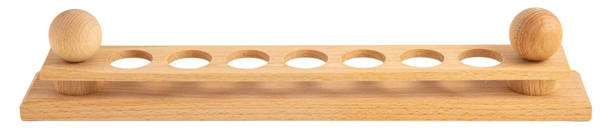 für Ayurvedische Chakra-Öleaus Naturholz, mit feiner Drechselarbeit, 31,5 cm lang, 5,2 cm breit und 8,6 cm hoch, passend für 7 Fläschchen