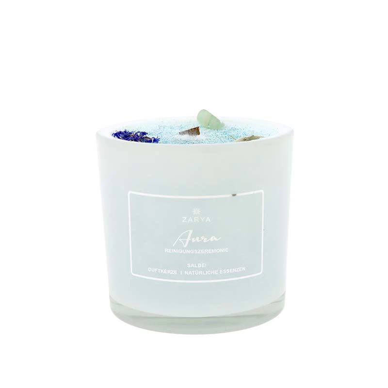 Diese hochwertige Zeremoniekerze besteht aus 100% pflanzlichen Stearin (kbA), naturreinen ätherischen Ölen, einem natürlichen Holzdocht, einem echten Edelstein und Bio-Pflanzenmischungen. Sie wurde in liebevoller Handarbeit in Deutschland angefertigt. Für die Aurakerze wird die ihr entsprechenden Öle und Edelsteine verwendet, um dessen reinigende Kraft zu unterstützen. Sie ist behutsam in Seidenpapier eingewickelt und in einer edlen Geschenkverpackung erhältlich.