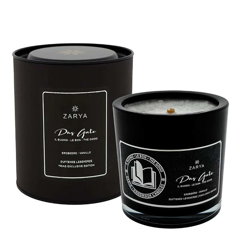 Diese Lesekerze der exclusive edition, ist aus 100% pflanzlichen Stearin (kbA) mit edlen Duftnoten und einem natürlichen runden Holzdocht, in liebevoller Handarbeit in Deutschland angefertigt. Sie ist behutsam in Seidenpapier eingewickelt und in einer edlen schwarzen Geschenkverpackung erhältlich.