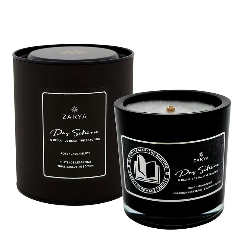 Diese Lesekerze der exclusive edition, ist aus 100% pflanzlichen Stearin (kbA) mit edlen Duftnoten und einem natürlichen runden Holzdocht, in liebevoller Handarbeit in Deutschland angefertigt. Sie ist behutsam in Seidenpapier eingewickelt und in einer edlen schwarzen Geschenkverpackung erhältlich.