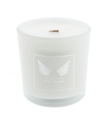 Diese hochwertige Erzengel Duftkerze des jungen Familienunternehmens ZARYA ist aus 100% pflanzlichen Stearin (kbA), naturreinen ätherischen Ölen mit einem natürlichen Holzdocht in liebevoller Handarbeit in Deutschland hergestellt. Der Holzdocht verleiht der Duftkerze eine angenehme Natur-Akustik durch sein einzigartiges Knistern. Der weisse Glasbehälter ist behutsam in Seidenpapier eingewickelt und in einer edlen beigen Verpackung mit silbernem Etikett erhältlich.