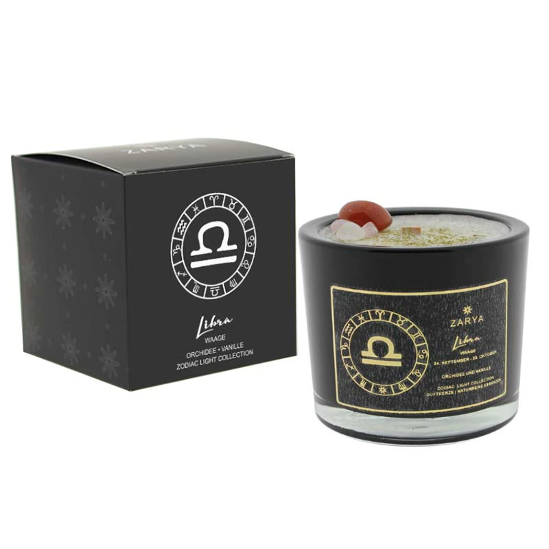 Der Holzdocht verleiht der Duftkerze eine angenehme Natur-Akustik durch sein einzigartiges Knistern. Es werden ausgewählte Mineralsteine verwendet und die ätherischen Öle entsprechen dem jeweiligen Sternzeichen. Der Glasbehälter ist in einer edlen Geschenkverpackung erhältlich.