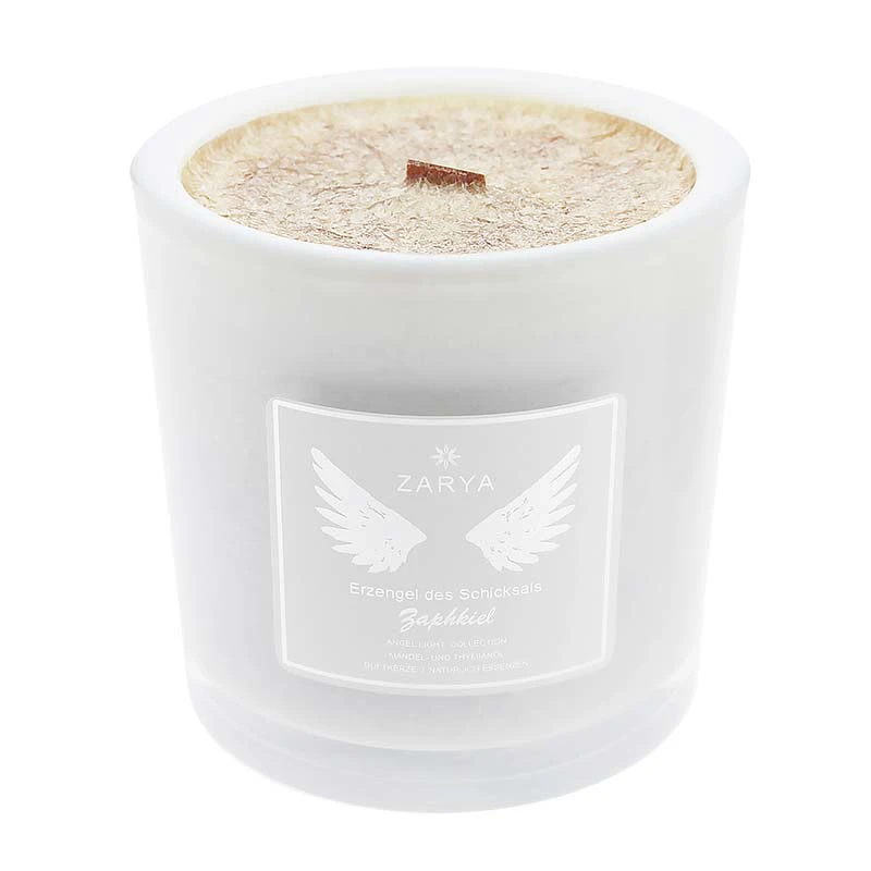 Diese hochwertige Erzengel Duftkerze des jungen Familienunternehmens ZARYA ist aus 100% pflanzlichen Stearin (kbA), naturreinen ätherischen Ölen mit einem natürlichen Holzdocht in liebevoller Handarbeit in Deutschland hergestellt. Der Holzdocht verleiht der Duftkerze eine angenehme Natur-Akustik durch sein einzigartiges Knistern. Der weisse Glasbehälter ist behutsam in Seidenpapier eingewickelt und in einer edlen beigen Verpackung mit silbernem Etikett erhältlich.