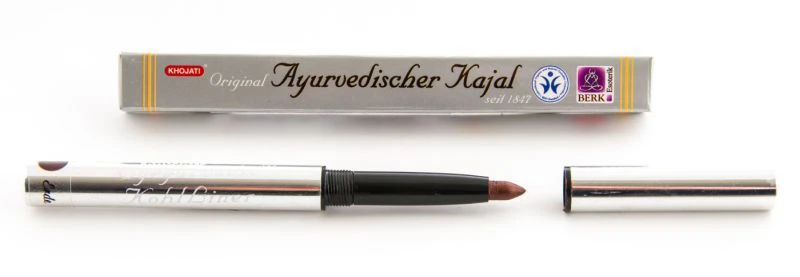 Unsere ayurvedischen Kajals werden nach den naturreinen Prinzipien des Ayurveda in Indien hergestellt und sind frei von chemischen Zusatzstoffen. Sie sind sehr ergiebig, glänzend und schmieren nicht. Sie kühlen und beruhigen müde Augen. Dies ist auch der Grund, warum Kajals in Indien selbst für Babys benutzt werden. Sie schützen und haben somit einen wohltuenden Effekt für die Augen. Der schwarze Kajal aus unserer Serie ist besonders für sensible Augen geeignet.