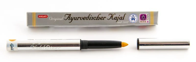 Unsere ayurvedischen Kajals werden nach den naturreinen Prinzipien des Ayurveda in Indien hergestellt und sind frei von chemischen Zusatzstoffen. Sie sind sehr ergiebig, glänzend und schmieren nicht. Sie kühlen und beruhigen müde Augen. Dies ist auch der Grund, warum Kajals in Indien selbst für Babys benutzt werden. Sie schützen und haben somit einen wohltuenden Effekt für die Augen. Der schwarze Kajal aus unserer Serie ist besonders für sensible Augen geeignet.