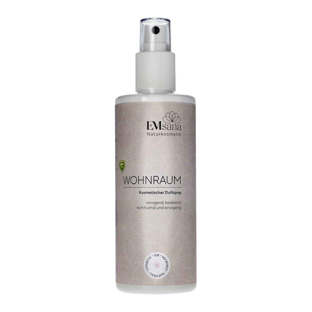EMsana Naturkosmetik Wohnraum Duftspray schafft mit seinem frischen Duft eine ganz besondere Atmosphäre. Es harmonisiert durch die Komposition auserlesener ätherischer Öle und Blütenessenzen die Luft. Einfach und schnell anzuwenden, eliminiert es üble Gerüche und lässt Sie herrlich erfrischt aufatmen. Auch bestens für die Schlaf- und Liegeplätze Ihrer Haustiere geeignet.