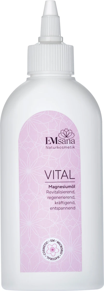 EMsana Vital eignet sich zur Faszien-Pflege und fördert und erhält die Beweglichkeit und Elastizität des Bindegewebes. Tiefgreifende Pflege des Bindegewebes mit Zechsteiner Magnesiumöl und EM. Magnesium wird rasch und effektiv über die Haut aufgenommen und erhöht wirkungsvoll und rasch spürbar den Mineralisierungsgrad des Bindegewebes bzw. der Faszien. Faszien sind die zähen, festen Häute des Bindegewebes, in denen sich eine grosse Anzahl an Rezeptoren und Nervenzellen befinden. EM Vital Magnesiumöl trägt wesentlich zur Gesundheit, Beweglichkeit und Biegsamkeit des Fasziengewebes bei.
