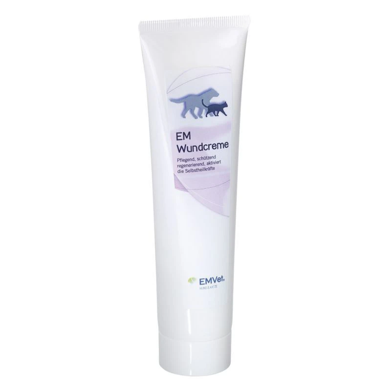 Pflegende Creme für Haustiere mit rein natürlichen Inhaltsstoffen, EM flüssig, EM-Keramik und Blütenessenzen.