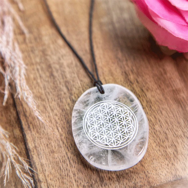 Das Energie-Amulett Blume des Lebens aus Bergkristall hängt an einem schlichten Baumwollband. Mit diesem Amulett können Sie das kraftvolle Symbol der Blume des Lebens immer bei sich tragen. Das Energie-Amulett wurde aus reinem Bergkristall gefertigt und auf der einen Seite ist das heilige Symbol der Blume des Lebenseingearbeitet. Das Zusammenspiel der Blume des Lebens und des Bergkristall ist besonders segensvoll und führt zu innerer Klarheit und Selbstbewusstsein.