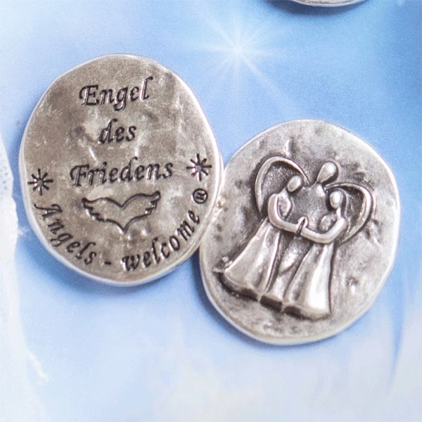 Auf der Vorderseite der Münze ist ein Engelmotiv abgebildet - auf der Rückseite finden Sie die himmlische Botschaft „Engel des Friedens“.